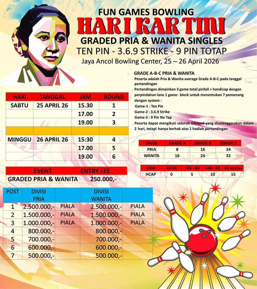Jaya Ancol Bowling Center Jln. Lodan Timur Ancol, Jakarta Utara-Indonesia wa.888-6218-888 email:ancolbowl@yahoo.com